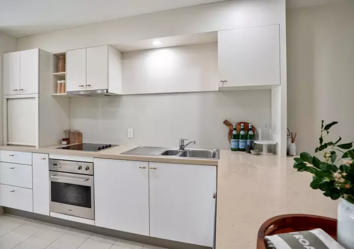 The kitchen is thoughtfully appointed with quality appliances, ample storage and generous bench space, catering equally well to everyday living or entertaining family and friends. Accommodation is peaceful and well separated, offering excellent privacy, while the modern bathroom, secure parking and lift access further enhance the home’s comfort and appeal.